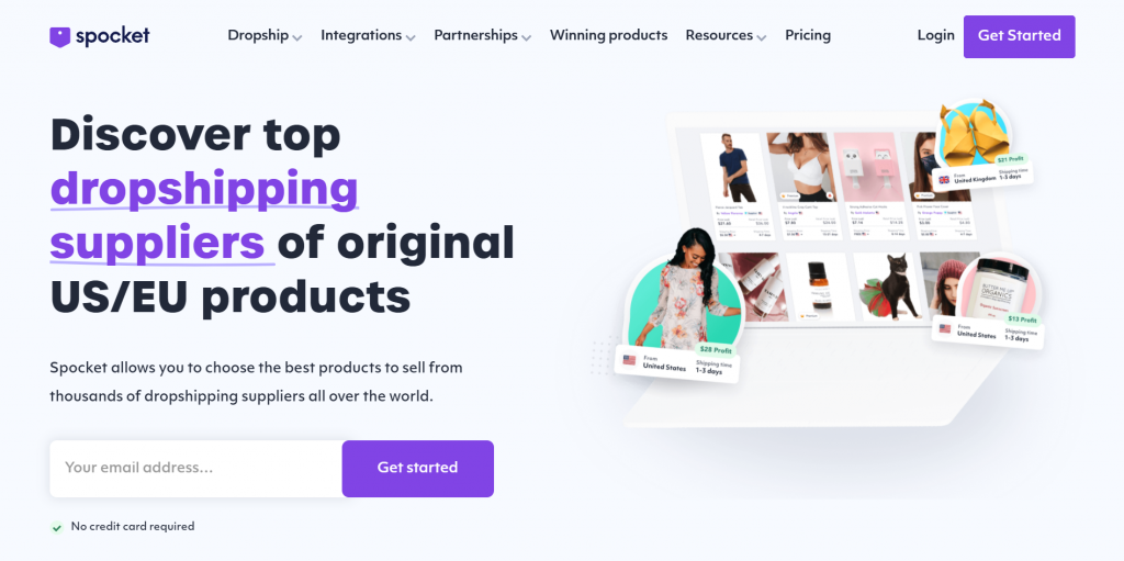 Here, the business owner joins a dropshipping directory like Spocket to look for suppliers and feature their products on the online store. The vendor handles order fulfillment and shipping while you manage the online boutique storefront.